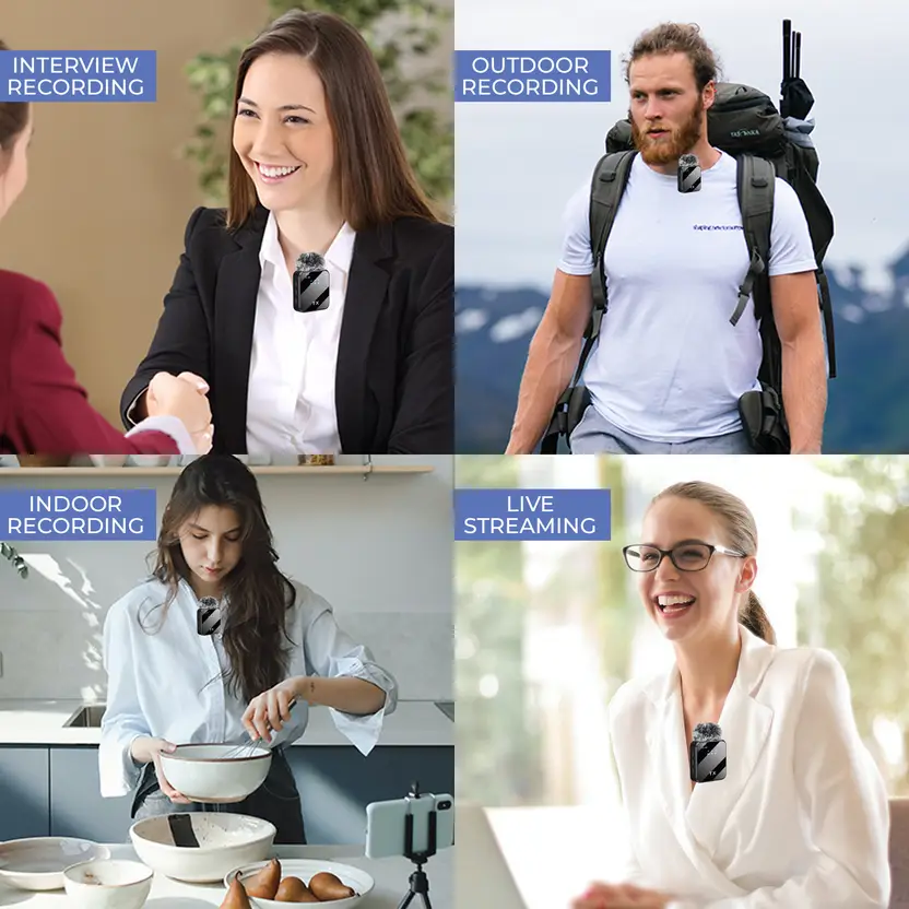 Dual-Person Audio: Two transmitters enable seamless simultaneous recording for interviews and vlogs.